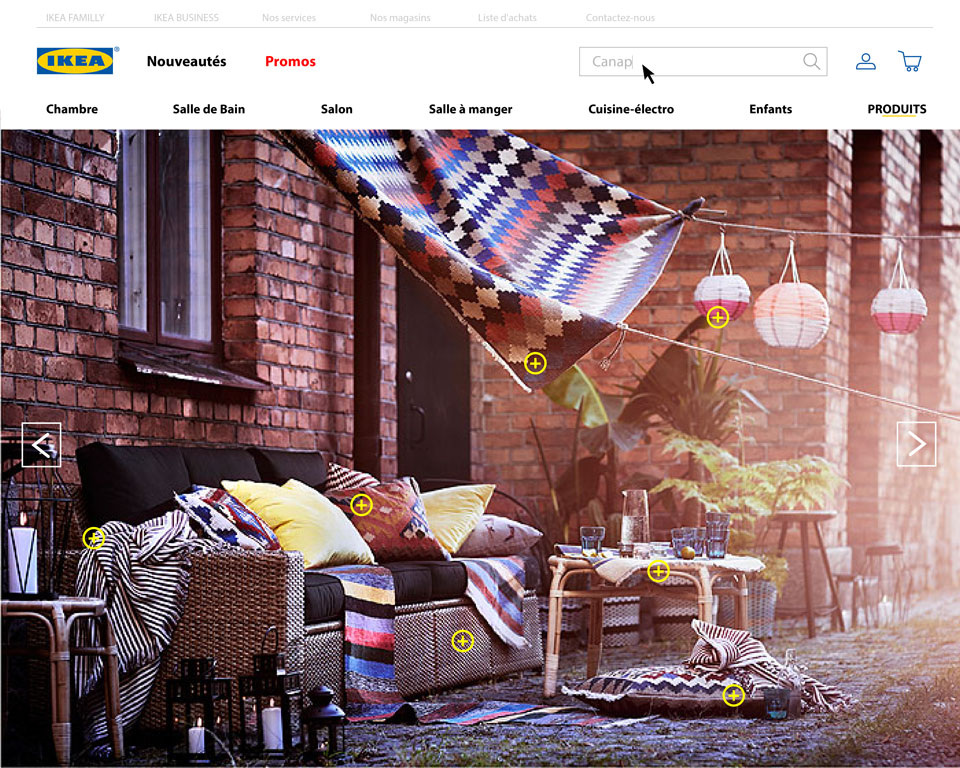 Most of customers like to spend most of their time in IKEA's stores where they're immersed in various worlds. The challenge was to find out how to transpose IKEA's in-store service quality to the website.